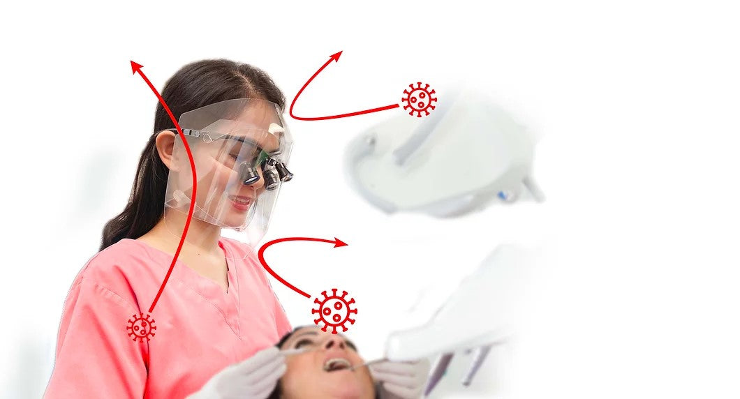 These face shields are specifically crafted to seamlessly fit loupes and loupe lights, offering comprehensive protection for the top, bottom, front, and sides. Their design accounts for the typical trajectory of aerosol spray, safeguarding you effectively, particularly from bottom-facing exposure.
